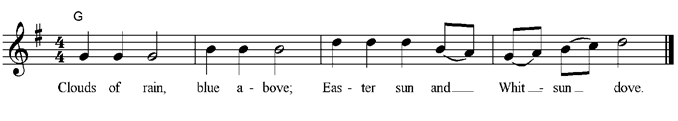 Clouds of rain, blue above; Easter sun and Whitsun dove. |