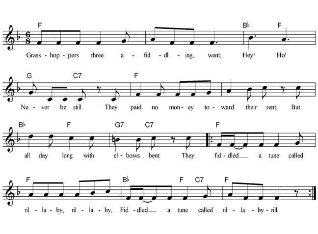 Grasshoppers three a-fiddling