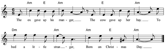 used for Christmas elsewhere. The second verse is not so well known and might be omitted for younger