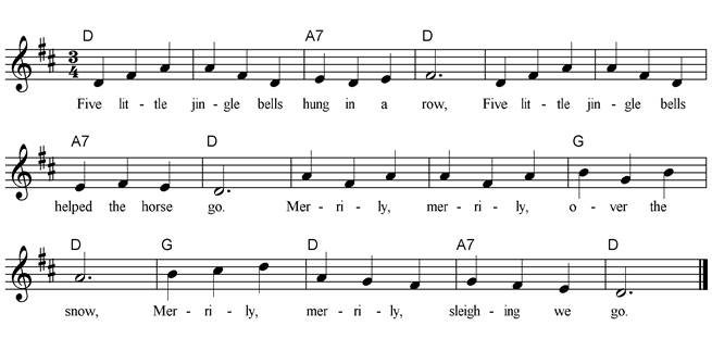 jingle bells. 7. Hold up three fingers. 8. Ask children to say how many