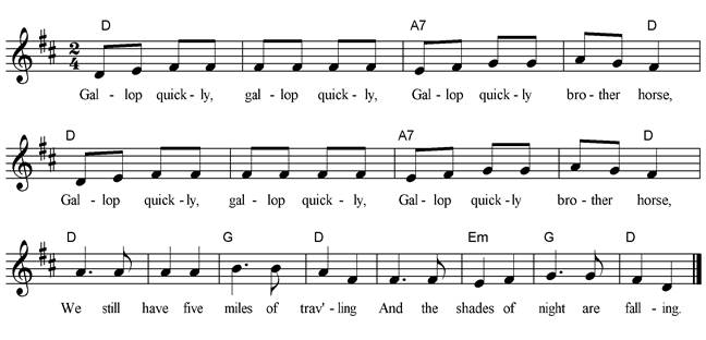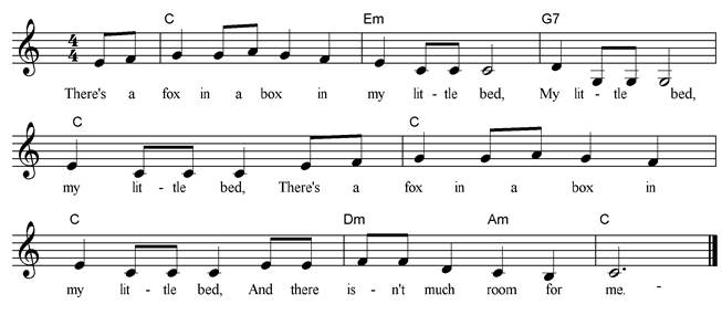 and would work well when accompanied by percussion instruments. It also lends itself to moving about the room in different ways;