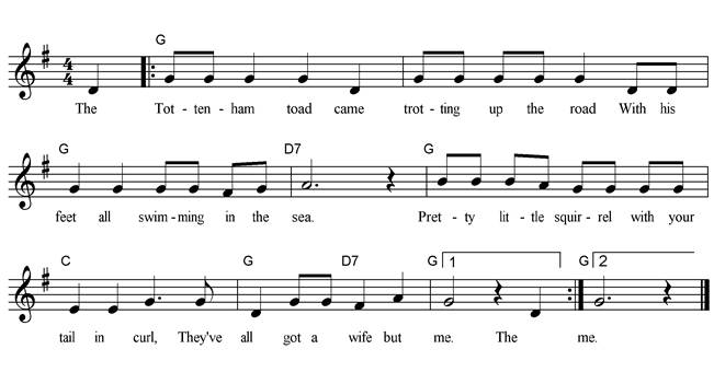 road With his feet all swimming in the sea. Pretty little squirrel with your tail in curl, They’ve all got a wife but me. |