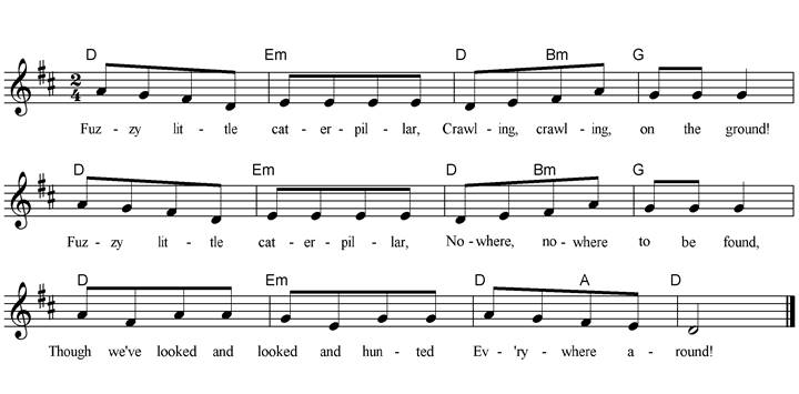 Fuzzy little caterpillar Crawling, crawling on the