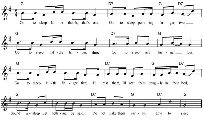 four; Go to sleep little finger,