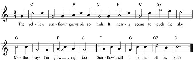 The yellow sunflower grows oh so high. It nearly seems to touch the sky. Mother says I'm growing, too. Sunflower, will I be as tall as you? |