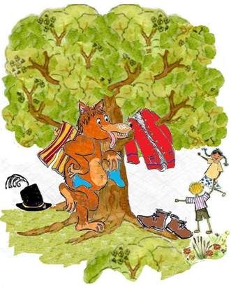 Jadą jadą misie Chodzi lisek koło drogi |