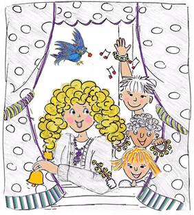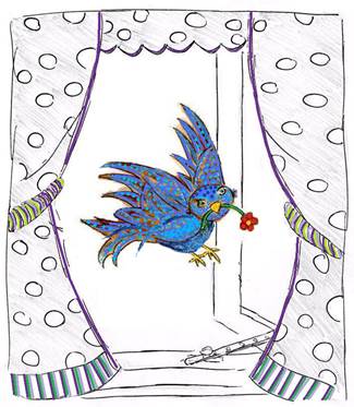 hands to make ‘windows’; a ‘bluebird stands in the centre.