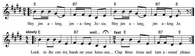 Josie, etc. Hold hands and turn under arms Circle version: Skip
