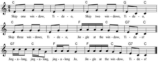 enhance the jingling nature of this tune. Free rhythmic play is more suited