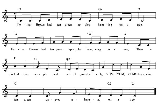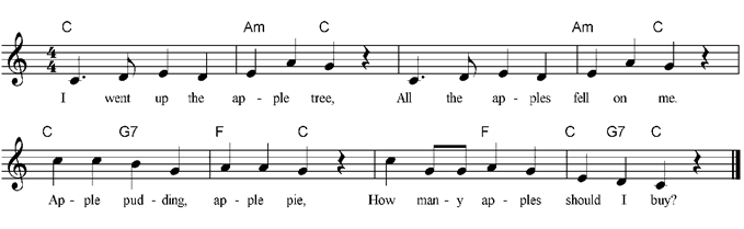 I went up the apple tree, All the apples fell on me. Apple pudding, apple pie, How many apples should I buy? |