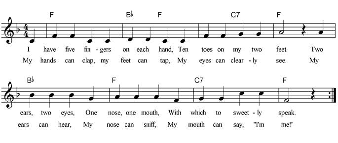 can tap, My eyes can clearly see. My ears can hear, My nose can sniff, My mouth can say, “I’m me!” |
