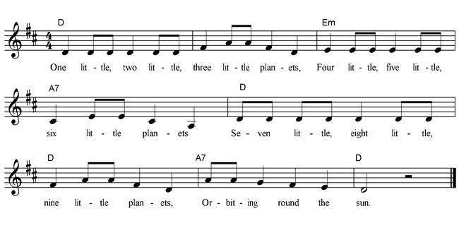 little, nine little planets Orbiting round the sun. Mercury is nearest and