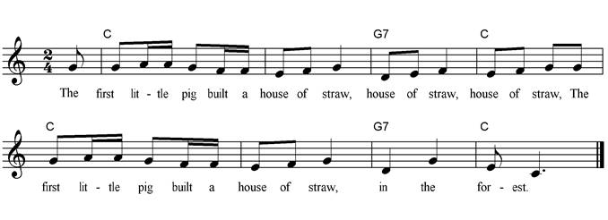 will recognise this tune as ‘London bridge is falling down’. Adapted