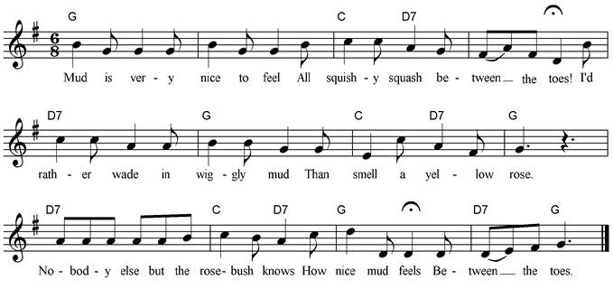 All squishy-squash between the toes! I’d rather wade in wiggly mud Than smell a yellow rose. Nobody else but the rosebush knows How nice mud feels Between the toes. |
