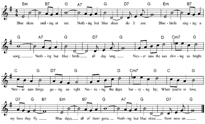 from now on. Hum / whistle Blue skies smiling at me. Nothing but blue skies do