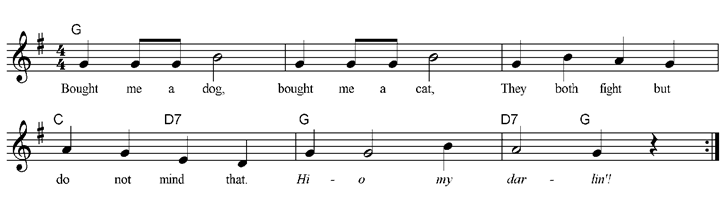 my darlin’! Bought me a dog, bought me a cat, They both fight but do not mind that, Hi-ho