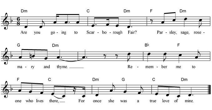 Scarborough Fair 🔊 A Child ballad #2; an American variant in the dorian mode. This one from