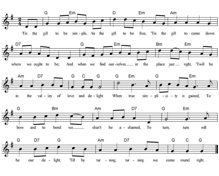 in 1848 it was written as a dance song: http://www.americanmusicpreservation.com/JosephBrackettSimpleGifts.htm I first came across this song in the 1960s; the delightful tune became a very familiar one in school assemblies as ‘Lord of the dance’ by Sidney Carter. I added it to my class music collection from a BBC Publication ‘Singing Together’ Spring 1974 to where it was described as an American ‘Shaker’ song; I have omitted the second verse as it was not in the original version. |