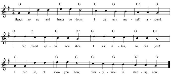 down! I can turn myself around. I can stand upon one shoe. I can listen, so can you, I can sit, I’ll show you how, Storytime (any other