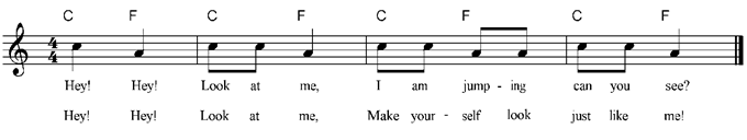 Hey! Hey! Look at me! 🔊 A copycat game with a very simple tune. Encourage children to make
