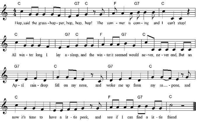 grasshopper 🔊 Time to wake up the Spring creatures. Children sit in a circle. Choose