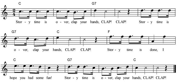 STAMP! Story time is over, wave ‘Goodbye!’ GOODBYE! Story time is over, wave ‘Goodbye!’ GOODBYE! Story time is done. I hope you had some fun! Story time is over, wave ‘Goodbye!’ GOODBYE! |