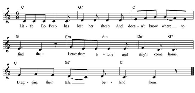 6487. To find out more about this rhyme visit: http://en.wikipedia.org/wiki/Little_Bo_Peep There are many variations of these verses including
