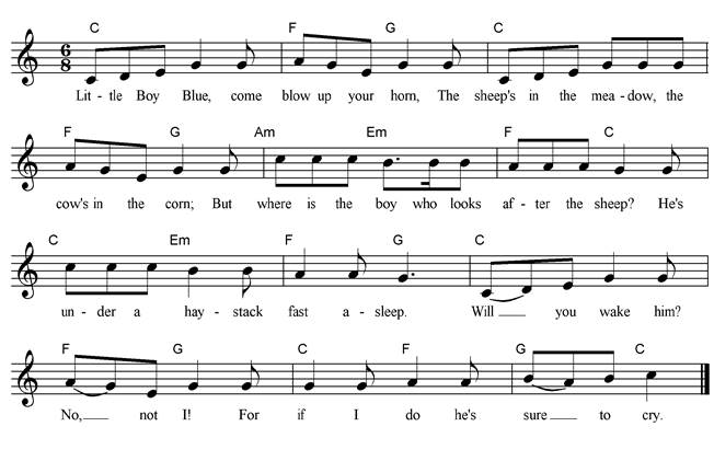 agrarian era. It has a Roud number of 11318 To find out more about this rhyme visit: http://en.wikipedia.org/wiki/Little_Boy_Blue