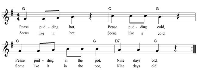 America it is more familiar as ‘Pease porridge’ and has a different tune. It has the Roud number 19631 To find out more about its