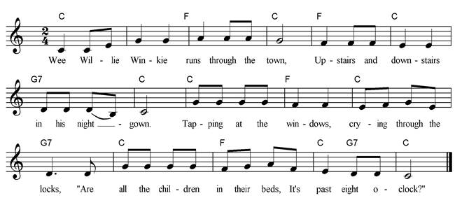 world. You can find the Scottish words at: http://en.wikipedia.org/wiki/Wee_Willie_Winkie There also seems to be two distinct tunes but the