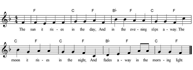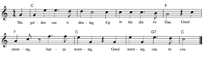 everyone or before bedtime. Discuss where the sun rises. Can also be sung as a round. Line 1. and 2. While