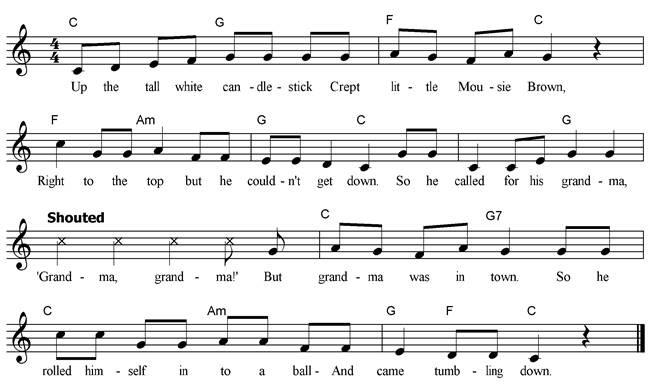 Two little feet go tap tap tap O This song is usually chanted but the tune below seems to