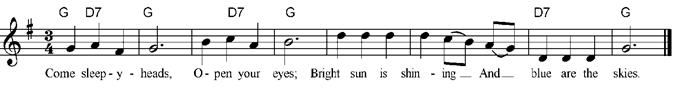 Come sleepy heads, Open your eyes; Bright sun is shining And blue are the skies. Jump out of bed, Do not delay, Don’t want to dawdle On such a fine day. |
