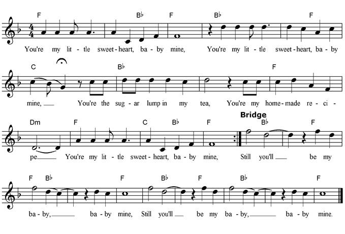 baby mine, You're the sugar lump in my tea, You're my homemade recipe, You're my little sweetheart,