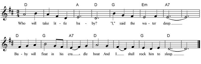 Who will take little baby? “I,” said the water deep. “Baby will float in his cradle