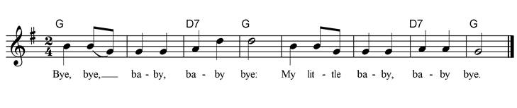 Bye, bye, baby, baby bye: My little baby, baby bye. Hush, my baby, baby bye: Hush, little baby, baby bye. Sleep, my baby, baby bye: Sleep, little baby, baby bye. Bye, bonny baby, baby bye: My little baby, baby bye. |