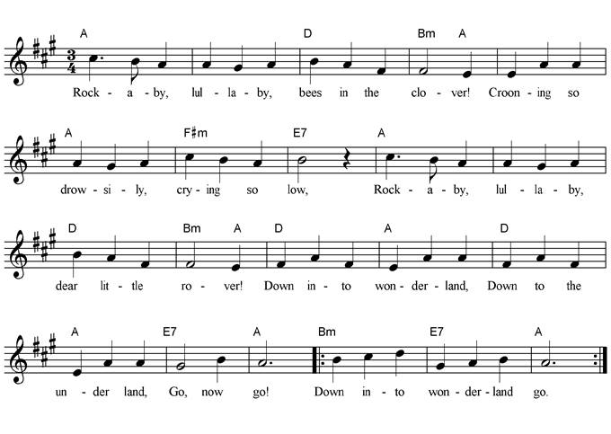 Lullalullaby, lullaby, lullaby, Sweetly sing to lullaby, Lullaby, lullaby, Sweetly sing to lullaby. |