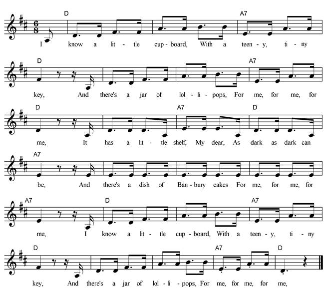 I know a little cupboard, With a teeny tiny key, And there's a jar of