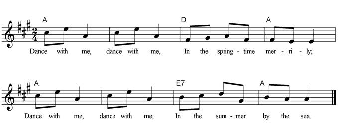 suggests a children’s dance so I have used a familiar format ‘Bow