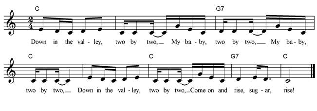 Down in the valley, two by two O Make up and copy a variety of movements in a lively manner. Make two circles one inside