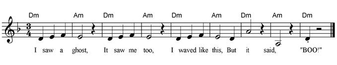 I saw a ghost, It saw me too, I waved like this, But it said, "BOO!". |