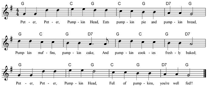 Peter, Peter, Pumpkin Head, Eats pumpkin pie and pumpkin