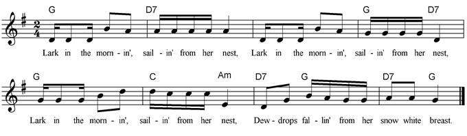 the morning sailing from her nest, Dewdrops fallin’ from her snow