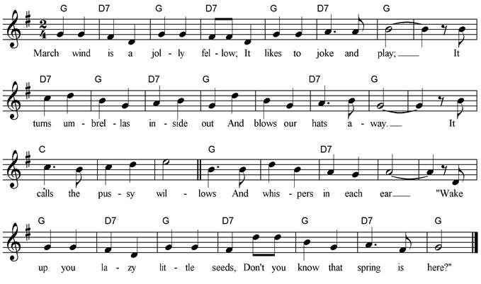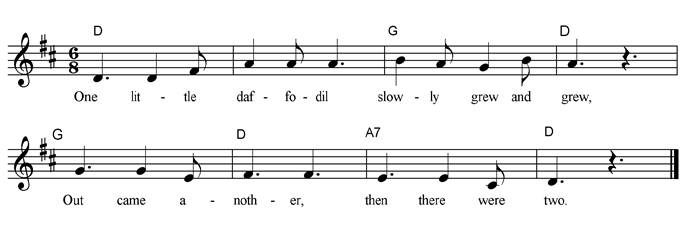Once I was seed, Sleeping in the ground, Then the sun came out, And then the rain came down, My leaves sprouted out Reaching for the sky, I grew and grew and grew, Now I’m ten feet high! And a little seed falls… Down, down, down, down, down to the ground. Shhhh!