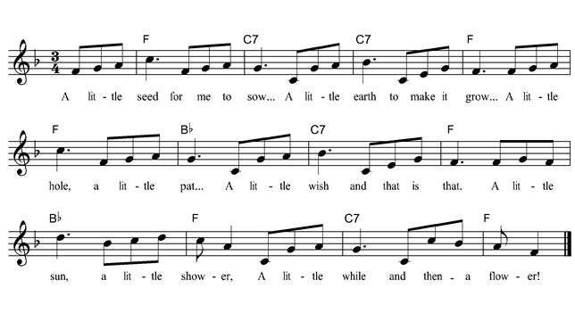 forefinger together A little earth to make it grow… cup hands together A little hole, a little pat… dig a hole in palm;