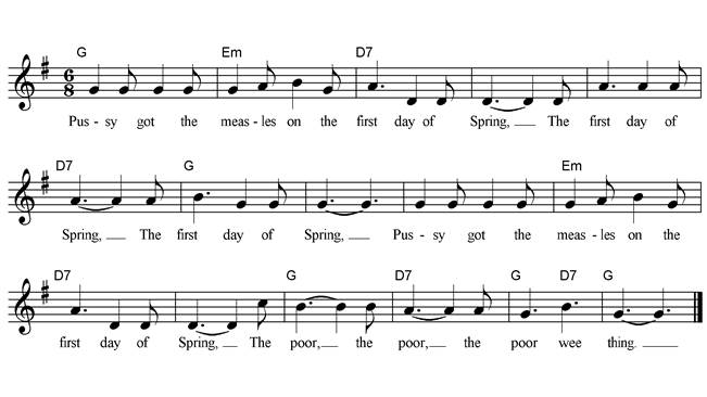 remember a playground chant and game ‘The cat’s got the measles, the measles,