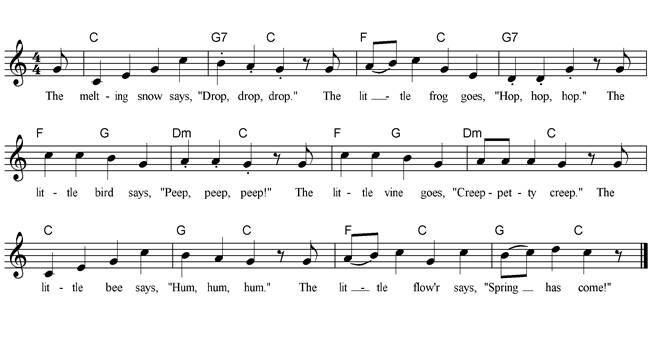 Where are the froggies when the north winds blow? We cannot see them in the ice and snow. Deep, deep, down in the mud they lie, Froggies sleeping with tight-closed eyes. When the warm spring sun comes out, Froggies wake and jump about. Oh, how happy they will be, A spring-time world they will see! Where are the turtles when the north winds blow? We cannot see them in the ice and snow. Deep, deep, down in the mud they lie, Turtles sleeping with tight-closed eyes. When the warm spring sun comes out, Turtles wake and crawl about. Oh, how happy they will be, A spring-time world they will see! Where