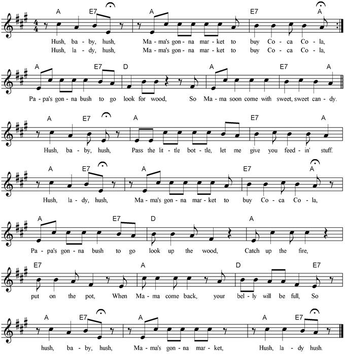 hush, baby, hush, Mama’s gonna market, Hush,