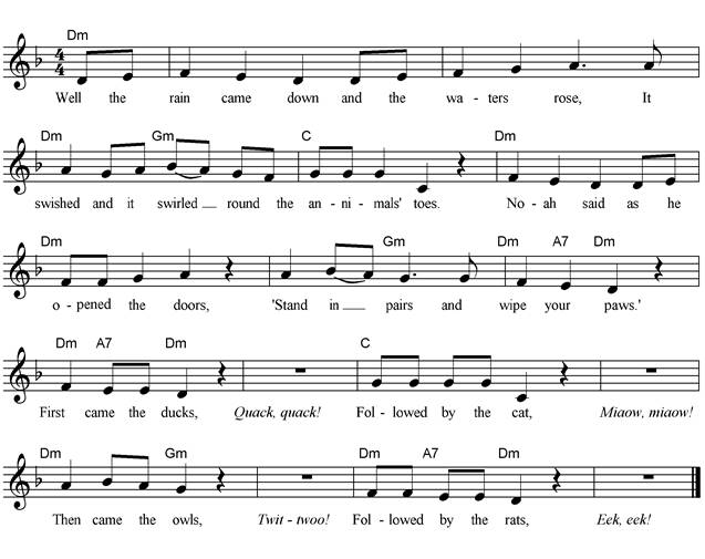 Noah story. This is one I learnt from the BBCs Music Box programme. It was