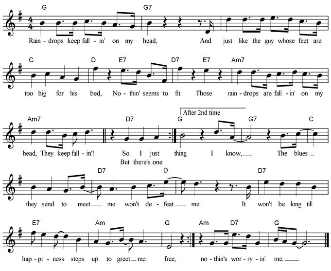 happiness Steps up to greet me. Raindrops keep fallin' on